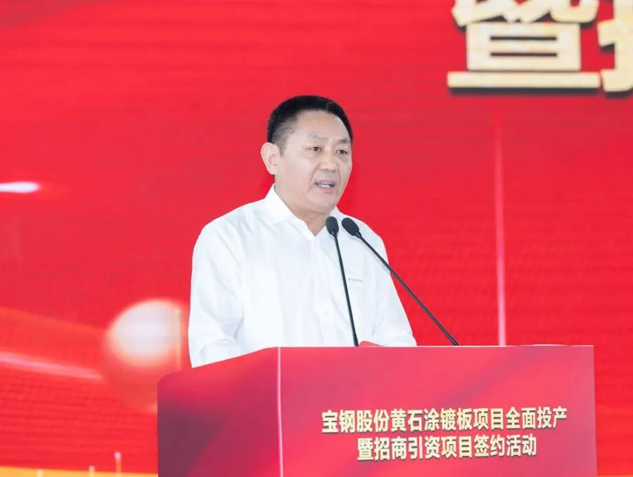 寶鋼股份黨委常委、副總經(jīng)理傅建國,寶鋼股份黃石涂鍍板有限公司黨委書記、董事長鄒美平出席活動并講話。